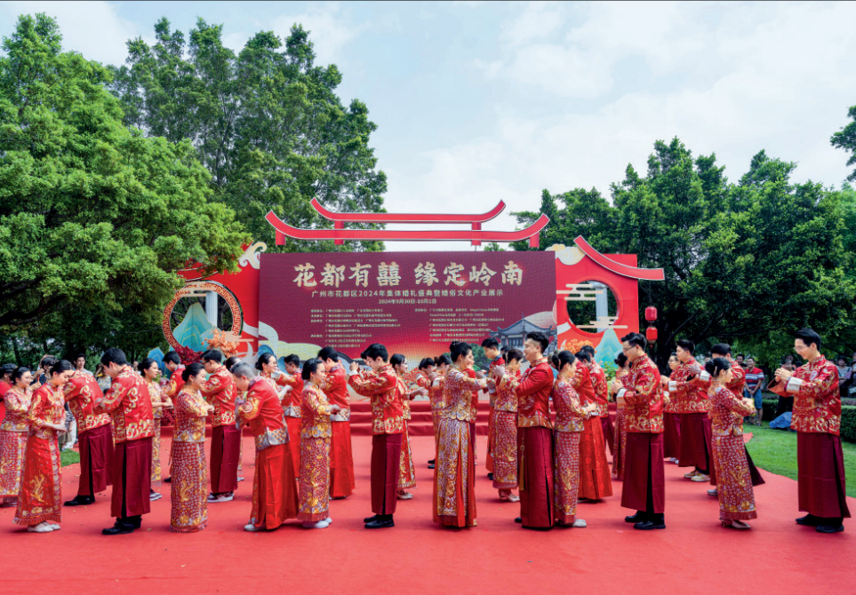 2024年10月1日,在花都湖畔举办了广州市花都区2024年集体婚礼盛典暨婚俗文化产业展示活动。